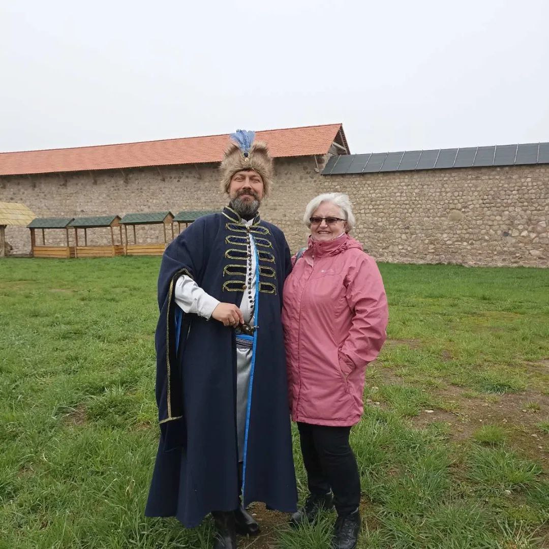 Поднялись на Юрьеву гору, познакомились с интересной личностью – просто Костей, как он сам себя представил. Его эмоциональный рассказ о трёх военных эпохах Крева пришелся по душе нашим экскурсантам. Он предложил попробовать блюда, которые подавали к шляхетскому столу, а сейчас их готовит его жена, хозяйка усадьбы «Зорка Крэва».