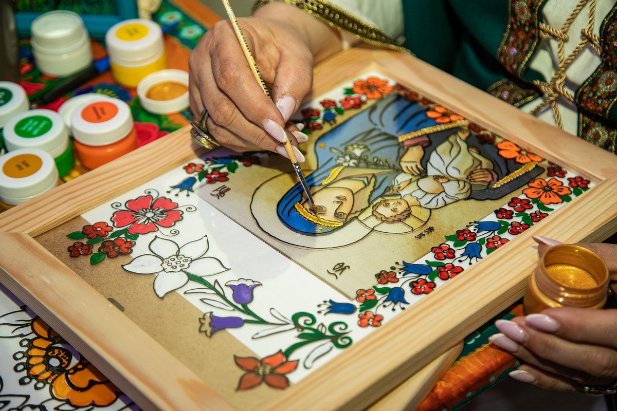 Привезли березовцы и другое свое нематериальной наследие. Например, сложные и элегантные сувениры из цельных брусков древесины. Или искусство росписи по стеклу.