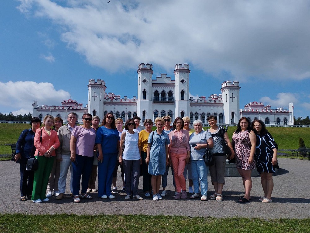 В пятницу, 30 июня, члены профсоюзной организации Конюховской средней школы совершили познавательную поездку в Коссово – Ружаны. В небольшом однодневном путешествии мы увидели роскошные архитектупные ансамбли Беларуси – дворец Пусловских (Коссовский замок) в Коссово, возведённый в неоготическом стиле, и белорусский Версаль – дворцово-парковый комплекс Сапег в Ружанах.