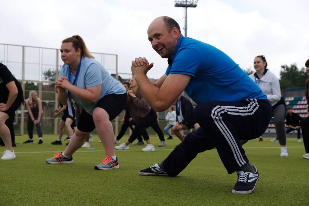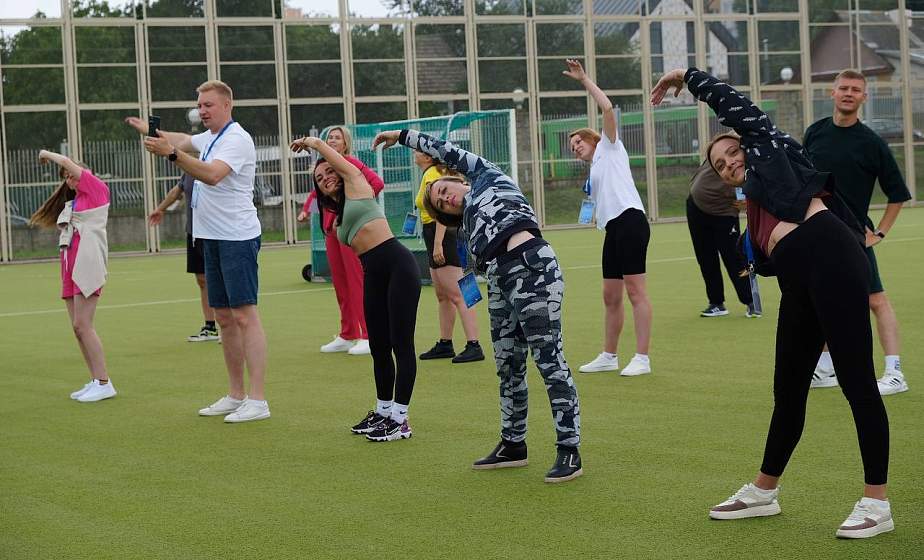 Во второй день республиканского обучающего семинара-практикума для руководителей территориальных комитетов БРСМ, на стадионе «Неман» в Гродно прошла «Народная зарядка», в рамках патриотического молодежного марафона «Насустрач II Гульням СНД».