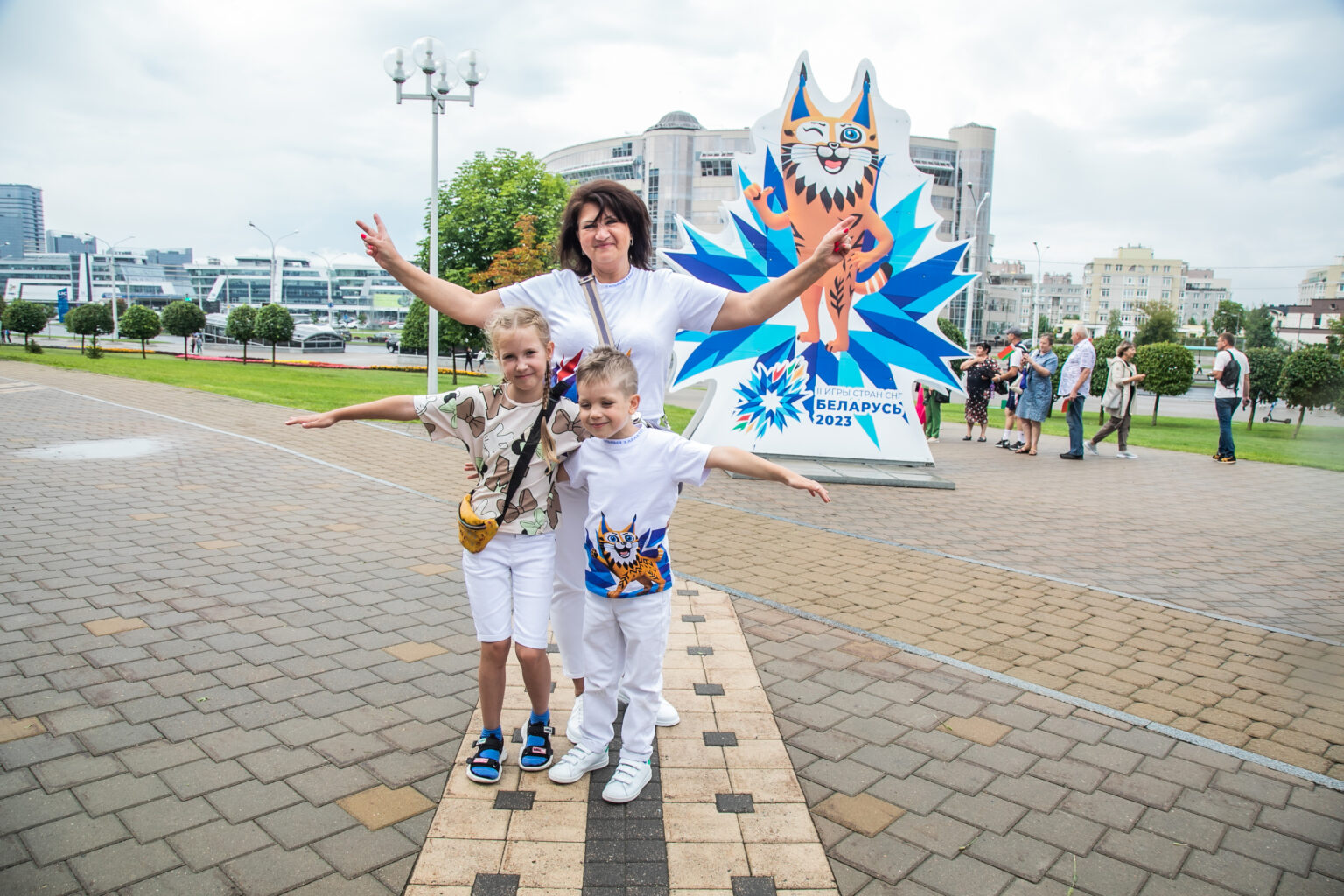 Лариса Сермяжко, инструктор-методист училища олимпийского резерва из Могилева пришла на церемонию открытия вместе с внуками Ариной и Арсением.