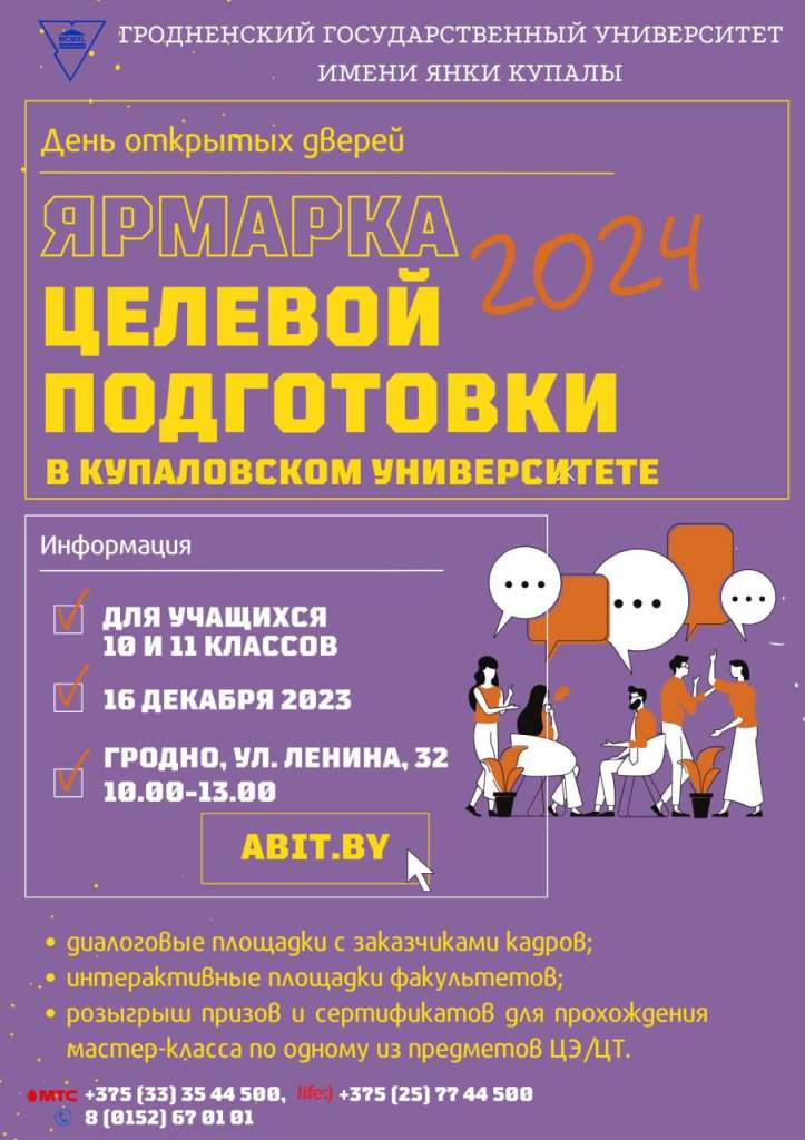 День открытых дверей пройдет в корпусе ГрГУ имени Янки Купалы по адресу: ул. Ленина, 32, учащихся ждут с 10.00 до 13.00. В будущем аналогичные ярмарки целевой подготовки пройдут и в районах области.