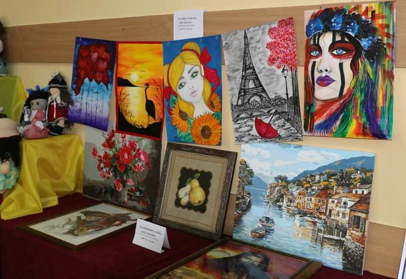 Импровизированный вернисаж, который располагался тут же в актовом зале школы, собрал большое количество работ в разных жанрах искусства.
