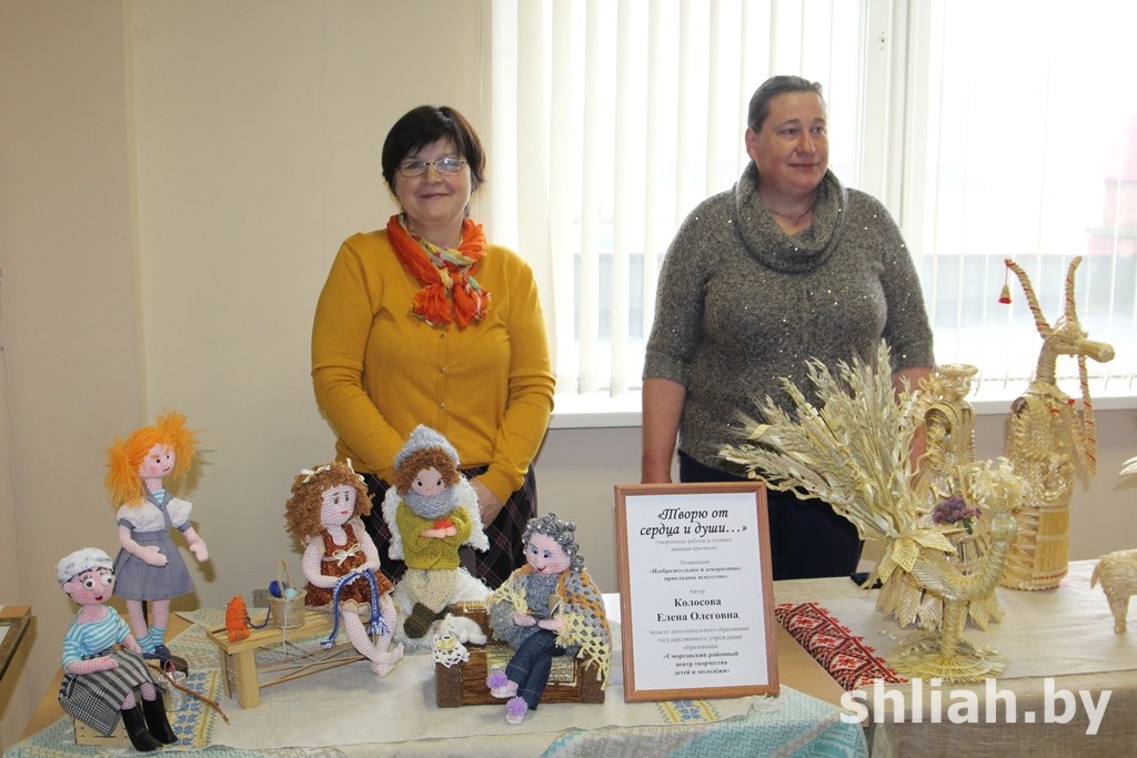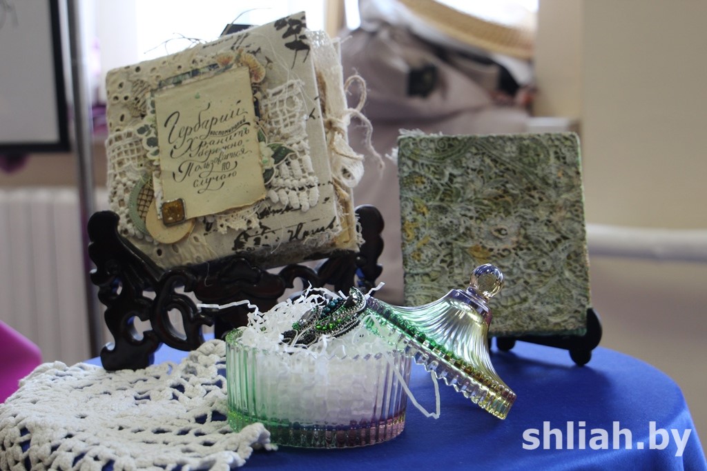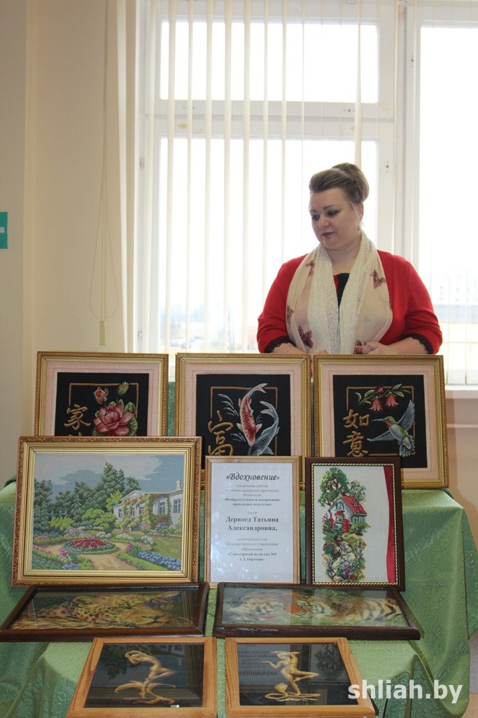 Организованная в фойе школы выставка показала, насколько не ограничены в своих полетах фантазии работники учреждений образования. На суд жюри они представили творческие работы, выполненные в технике живописи и гуаши, манкографии и скрапбукинг, вышитые крестиком, сделанные из соломки, связанные крючком.