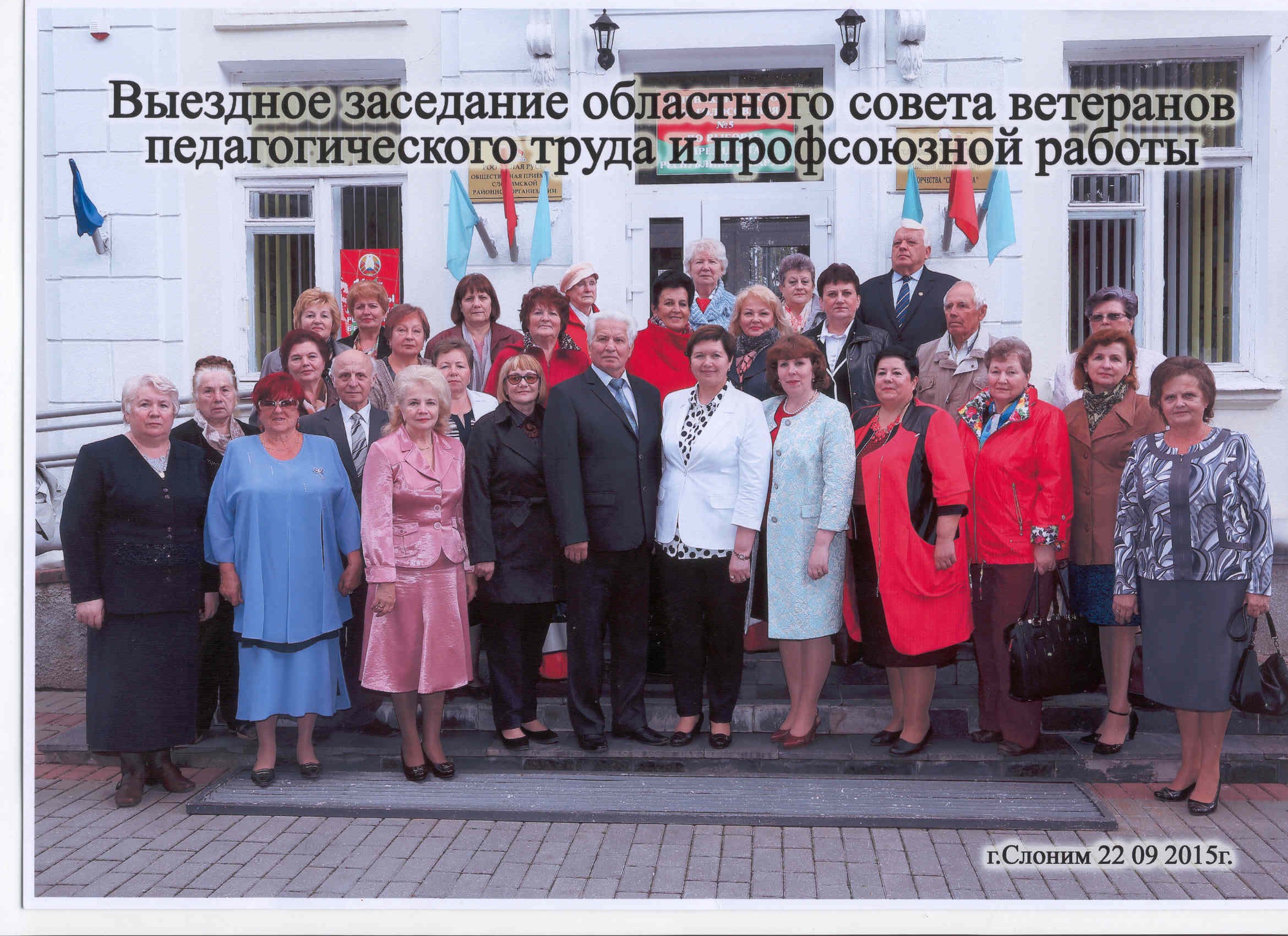 Ежегодно на базе одного из районов проходит выездное заседание Гродненского областного Совета ветеранов педагогического труда и Белорусского профессионального союза работников образования и науки, где председатели районных Советов знакомятся с опытом работы с ветеранами в районе, в учреждениях образования. Встреча ветеранов 22.09.2015 года подтвердила, на сколько интересный опыт ветеранского движения накоплен в Слонимском районе.