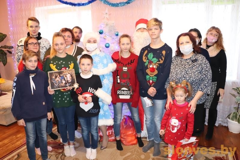 В гости к Чиликам-Казущикам с добрыми словами и подарками пришли председатель Слонимского райкома профсоюза работников образования и науки Наталья Николаевна Фидрик, педагоги и учащиеся ГУО «Средняя школа № 2 г. Слонима», в которой обучаются несовершеннолетние, являющиеся воспитанниками детского дома семейного типа. Добрый волшебник Дед Мороз и его прекрасная внучка Снегурочка, порадовали детишек своими играми и шутками, зарядили всех присутствующих положительной энергией. Гости поздравили ребят и их родителей с наступающими новогодними праздниками и пожелали им мира, добра и семейного благополучия.